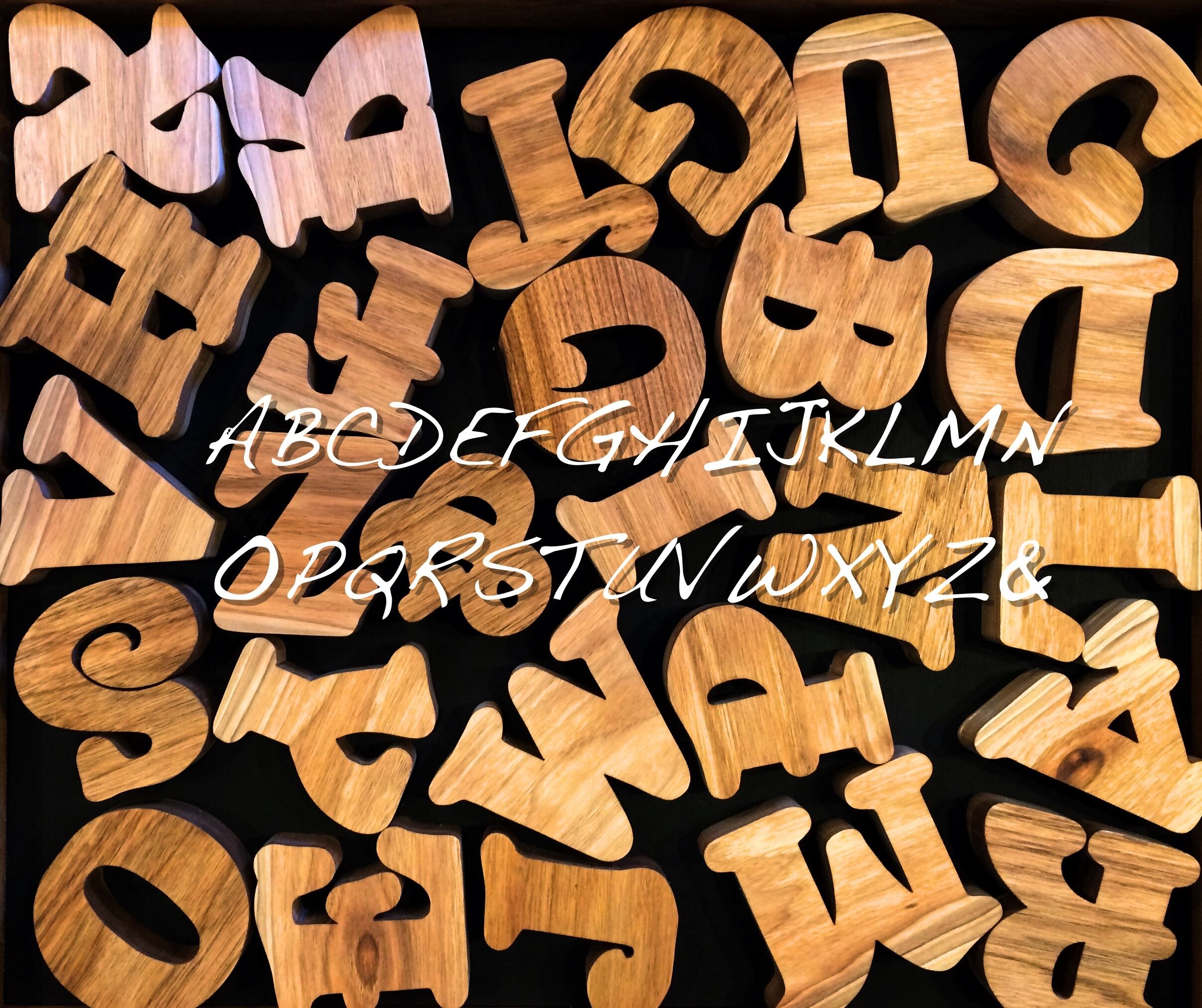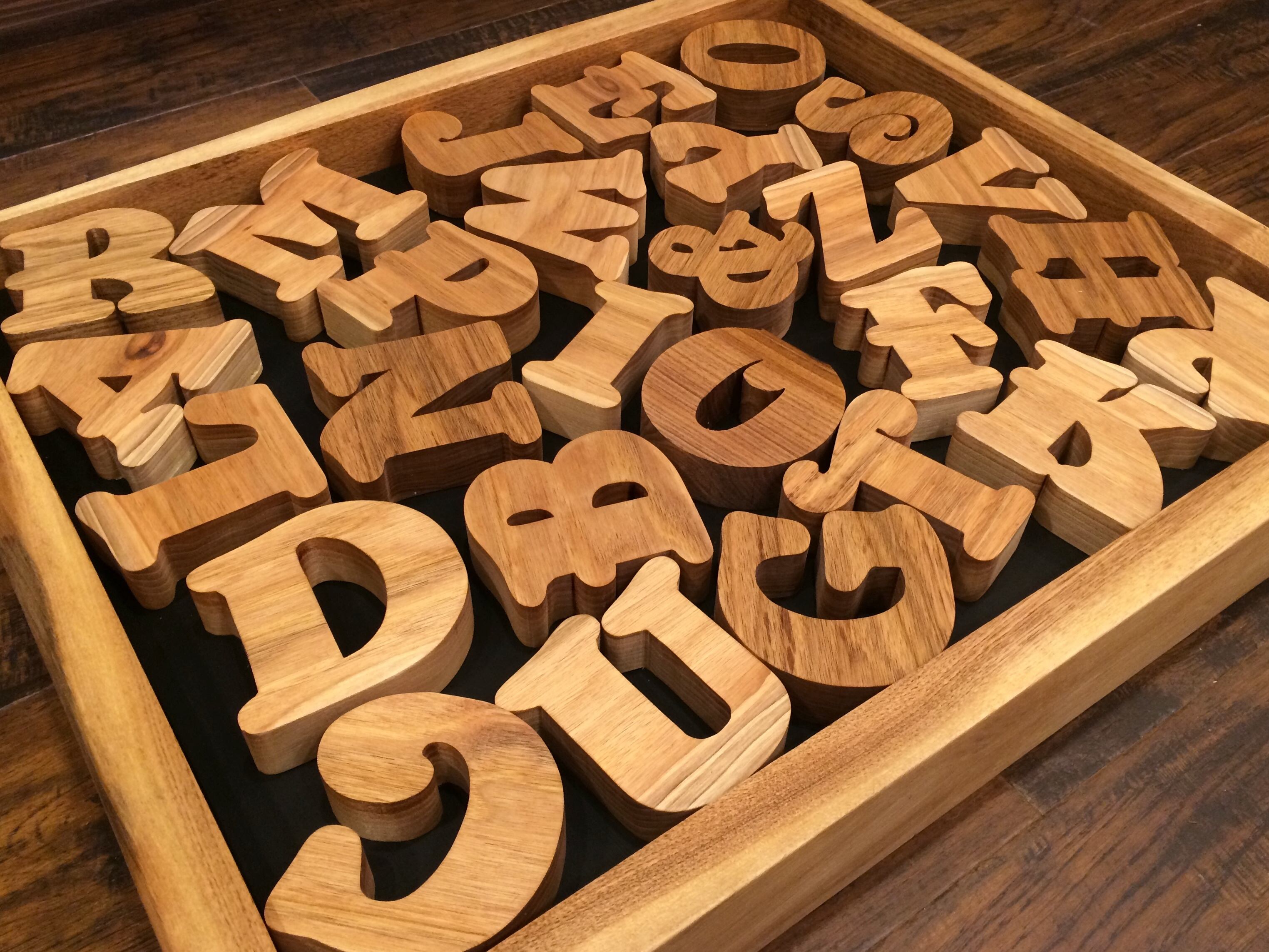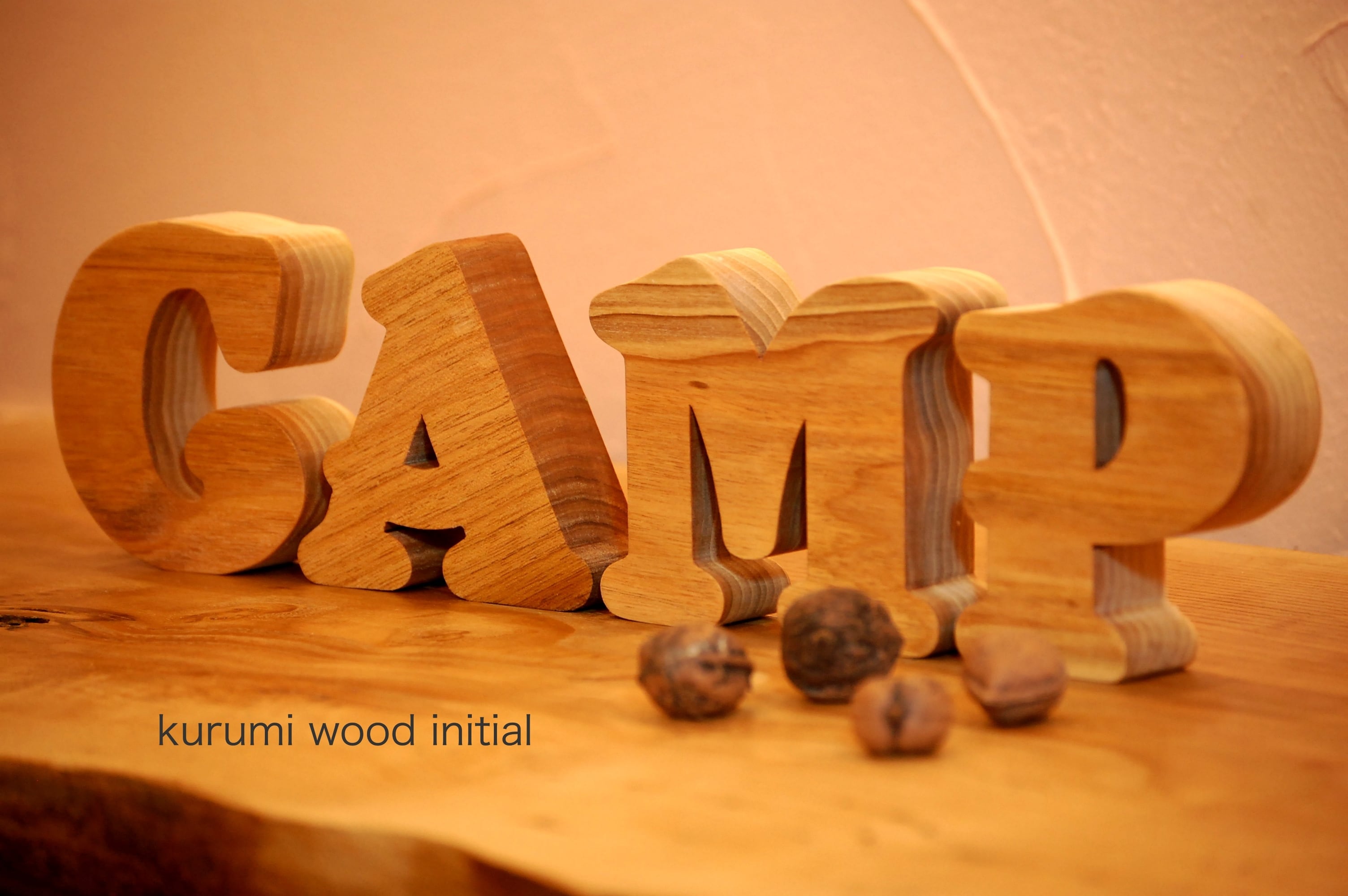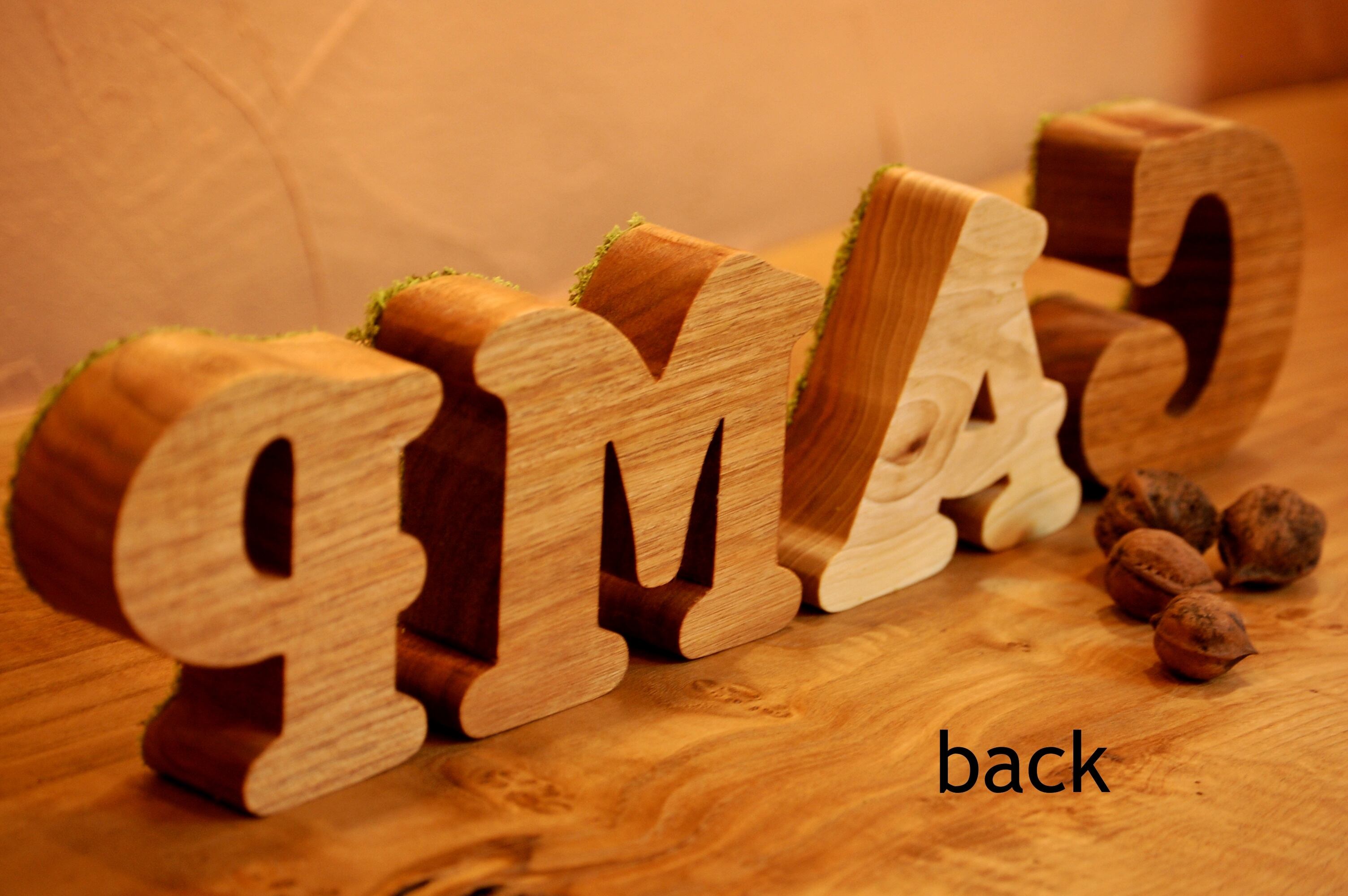 当FAVORITO工房で家具・木皿・カッティングボードなどに使用している贅沢で厚みのある天然無垢のくるみの一枚板から一文字づつ切り出し製作しているイニシャル ウッドです。